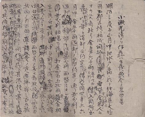 水戸藩財務担当の小瀬光清が伊藤八兵衛に宛てた借金内訳の下書きです。