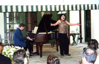 ドゥローザ氏の邸宅でのハウスコンサートです。右:ドゥローザ氏のリムジンで送迎して頂きました、母と妹も大感激!