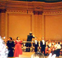「明けましておめでとう」一月も下旬になろうとしていますが、冬休み以来会う友人とは新年のあいさつから会話を始めています。昨年12月に無事に前期を終えそのしめくくりはカーネギーホールでの「日米友好クリスマス公演」ベートーヴェン第九交響曲の独唱を務めたことでした。 満員の観客と共に第4楽章のあの有名なメロディーが始まった時、二月に単身オーディションに渡米した事、ジョンソン先生との運命的な出会い、合格手続き、入学手続き、そして九月からの厳しかったジュリアードでの生活のことが思い出されました。すでに休学したクラスメイトがいたり、それぞれの実力の差がはっきり見えてくる「試練」をひとまずくぐり抜けてきた喜びがひしひしとこみあげ、真に「歓喜の歌」となりました。公演を無事に終え、私は待ちに待った帰国の途につきました。 帰国一番 さて帰国一番私がまず行った所・・・それは6年間、東京で師事した磯貝静江先生のレッスンでした。先生には呼吸法、発声法、音楽作り、またご自身の海外での経験に基づきつつ職業歌手を目指す上で必要な態度や振る舞い、自己管理の仕方などを、母親の様に手取り足取り教えて頂いています。しかし何故ジュリアードでジョンソン先生に師事している上に磯貝先生の所へ伺ったかについてお話ししたいと思います。 西洋人と東洋人との骨格の違い皆さんは西洋人の顔の骨格と東洋人のそれを比べたことはありませんか?西洋人の顔は小さいけれど奥行きびある頭の形、高い鼻、よく上がった頬骨。これらの骨格の違いは歌手にとって声を作り磨いてゆく上で大切な役割を果たします。 ということも私は磯貝先生の所で学んだのですが、先生は歌手としての活躍に加えて十年間に亘って、フランスのアルクおこなわれるプロが参加する夏期講習会で、日本人で初めての声楽の教授をなさっていました。この経験を通じ西洋人や東洋人の体つきが西洋音楽を演奏する上でどのように影響しているか分析なさり、日本人の私がどのように克服してゆくか客観的なご指導して下さいます。 九月からのレッスンでジョンソン先生は「頬骨にのった声が出るよう」に指導なさいました。(例えていえば、頬骨にお皿があって、そこから声がこぼれないように声を出す)そんな発声を求められ、先生のなさる頬骨の筋肉の動きや声を模範として研究するのですが、他のアメリカ人の学生の様な声質になってゆかないのです。これは表面的に先生の顔の様子を真似することではなく、西洋人と私の何か大きな違いがあるに違いないと思い磯貝先生のところに伺ったのが理由です。 体のすべての器官をつかう「微笑むように頬骨を上げて歌いなさい」というジョンソン先生のご指導を顔ばっかり真似しているとスクラップ後の様な平たい声になり易く、元来頬骨の高い西洋人にとっては結果的に「微笑む」という形になるけれど、東洋人の場合は、あごのつけ根やのど、後頭部のあらゆる器官を動員しないと西洋人と同じような声質にならないそうです。 ジョンソン先生のご指導を受け試行錯誤を繰り返し、そして磯貝先生に分析して頂いて具体的に日本人の私にあてはめてゆくことでジョンソン先生のご指導がしっかりと「私のもの」として定着してゆくのを感じました。 いつの日か一人歩きを! アメリカでの私はまだ赤ん坊です。その赤ん坊がつたい歩きをする様に、私にはまだ磯貝先生の様に別の言葉で置き換えて下さる存在が必要ですが、いつの日か様々な特性を体得し「西洋人だからすごい声が出る」のではない自分の体を作り自分の力でたち歩けるようになりたいと思っています。
