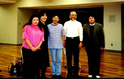 左からソプラノ小渡恵利子さん、メゾ鳴海真希子さん、このHP制作者でもある私、指揮者佐々木 修、バス熊木晟二さん、テノール鹿内芳仁さん。