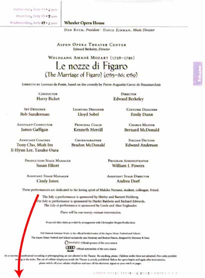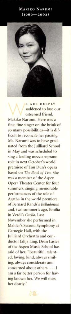 そして2002年のアスペン音楽祭の公式プログラムでは、故鳴海真希子さんを追悼する文が掲載されました。