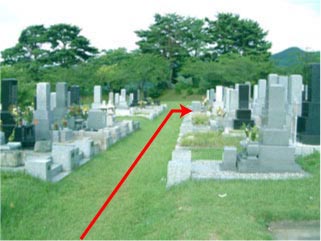霊園に入り、右方向に大きく回って一番上のブロックです。