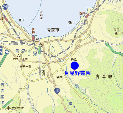 月見野霊園は青森市の中心部、青森空港から、それぞれ8〜9kmに位置します。