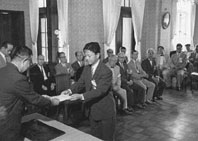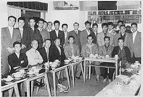 昭和33年に公衆衛生学教室が認可になり、昭和34年4月長崎から中村正教授が着任した。教室開講記念に赤石教授らと呼ばれたときの写真があった。その年の忘年会は大鰐で合同でやった。
