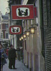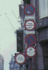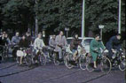 オランダへ入った ヘ−グの街の石だたみ 自転車の人々 色々な標識