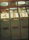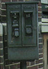 ポストと切手自動販売機 地下鉄切符自動販売機 スコッチ織物の店