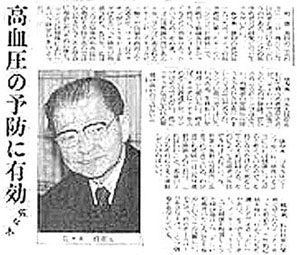 1954年というと昭和29年ですが、この年からわれわれは「脳卒中や高血圧の予防」を目標に疫学的研究を展開しましたが、その中で、りんごがその発症を予防すのではないかという証拠があがってきまして昭和33年に学会に発表したところ、「高血圧の予防になる」という記事になり、世界中に報道されました。その後停年まで追跡研究して論文を書き、世界に発信してきました。その理論はナトリウムとカリウムの比ということで考えたのですが、食塩の取りすぎは悪く、リンゴは良いということで、どうやら一石を投じたと思っております。