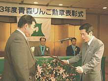 「青森」というと「りんご」をイメ−ジする方が多いと思うが、その青森に「青森りんご勲章」というのがあって、私に平成14年2月18日授与したいと知事から書面が入った。