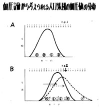 以前に東北地方農村に若年者高血圧者が多いことが注目され、これが主として遺伝的な、家系的な、関係において考察されましたが、われわれの見方をするならば、その若年性高血圧者を含む人口集団の血圧の分布が高い方にずれているのであって、他の人は正常であるが、その人だけ若年性高血圧者であるというケ−スとしての認識の仕方にはなりません。その集団全体に共通に影響力のある何かを考えなければなりません。すなわち、最高血圧が150ミリあるいは120ミリといっても、Aの集団とBの集団では150ミリ、120ミリのもつ意味は異なっていると思うのであります。