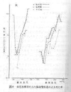 脳血管障害の病型別にみると図4,5のように、脳出血、脳梗塞、その他の順に同じ血圧水準でも死亡率は高く、血圧水準上昇と共に死亡率が一定の増加率で増加する傾向があることが認められた。