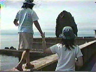 まもなく10才になる孫のなずなの手を恵美子さんが手を引いて、修がビデオをまわして・・・2003.8.1.場所は浅虫臨海実験所への道である。