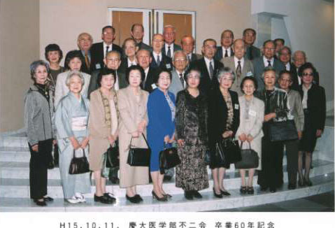 平成15年10月10日、卒後60周年記念のクラス会が、思い出多い三田の山で開催された。世話人幹事の梶原貞信君から当日の記念の写真を送ってきたので入れておく。