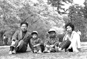 近況「58年のわが家の正月は、ベ−ト−ベンの第七を聞くニュ−イヤ−コンサ−トにあけました。12月に、次男修が、ザルツブルグでモツアルテリウム音学校のオ−ケストラを指揮して演奏した時のテ−プでしたが、中々若さに満ちた音で、地元の新聞でも好評だったとか。長男章は、これ又音の職人でレコ−ドつくりを東京でやっていますが、私達にとっても初孫も生まれ、元気でいます。従って弘前では、家内と中1になた三男繁と三人で、目下おやじ共々、マイコンに熱中しはじめたところです。写真は,57年11月にハワイで開かれた第2回の日本人の高血圧に関するシンポジウムに参加したとき、アメリカへは初めての家内と一緒にとったものです。小生、大学の停年にあと数年ということになりましたが、そろそろまとめを考えなくては、というところです。日本の塩の先生といわれ、カリウムとの関係も見直されてきて、りんごの先生といわれるよになりました。1月23日(日)のNHKクイズ面白ゼミナ−ルで、”りんごと健康”の2分半のレクチャ−に出演しました。国内の学会のほか、金があれば毎年でも国際学会に出たいといったところです。59年に第49回日本民族衛生学会を弘前でやることになりました。」