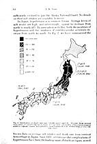 またその日本に於ける脳卒中の地域差も「30-59歳」というわれわれが名付けた「中年期の脳卒中死亡率」の地域差が図の上で視覚的にはっきりと示されたことにもあったと思う。なぜなら、アメリカで高血圧と食塩との関係を追究していたL.K.Dahlが高血圧に関する国際シンポジウム(1960年)で自分の動物実験で追究した食塩摂取と高血圧発現との推論が人間にも当てはまるのではないかとの「Possible role of salt intake in the deveropment of essential hyperension」を発表したとき、その中でわれわれがHuman Biologyに示した日本の脳卒中の地域差を示した図の上に、日本における食塩摂取量に関する資料として福田篤郎先生の秋田での食塩測定値とド−ル先生自身が広島(ABCC)で測定した値と私の資料からの値を入れた図を重ねて示していた。