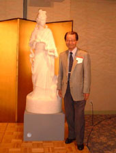 キャッスルで開かれた懇親会での目玉は、若手津軽しゃみせんもよかったが、菅原教授注文の「衛生の女神ハイジエイヤ」の像が披露されたことだ。