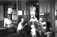 昭和30年7月、弘前市政調査会からの依頼によって、裾野地区の住生活調査が行われた。高橋先生が班長で、亡くなった農学部の宮下先生や、寄生虫の北畠先生らと、住生活、寄生虫、水質検査、血圧測定などを行った。その時の一こまで、学生として参加した、田村、山中、芳賀の諸君が井戸の検査をしているところ、上からのぞいているのが武田助手、うしろ向きで聞き取りをしているのが高橋教授である。