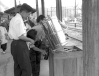 写真3は、昭和32年に二年生だった高橋彰彦、坂巻太二、清水信一郎、葛西亨君らの「夏期鉄道飲料水の衛生管理に関する調査並びに考察」であって、一緒について行ったとき、大館の駅でとったものだ。