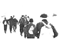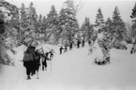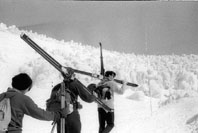 皆若かった。スキ−をかついで、それも長い、重いスキ−を。