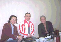 丹内先生「ところがご承知のように、昭和20年が終戦の時でございますから、スキ−をやるのも、その他のスポ−ツをやるにしても、これは大変な苦労がありました。何しろ青森の空襲で一切灰になりました。さあどうしようか。一年も休んだことのないこのスキ−を何とかつづけたいと。そおういう気持ちで一生懸命さがしました。そうしましたら、進駐軍のスキ−が、ヒッコリ−があったのですね。今はスキ−も短くなりました。当時は2M20. ここ大鰐の後藤旅館で合宿をしまして、そして大会にも出た。非常に困難な時代にスキ−をやり、困難を克服した当時の学生はよくやったなと」