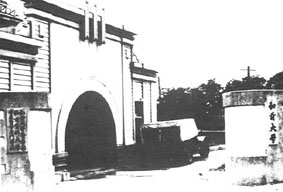 それが写真5である。門の前の看板が歴史的にみて貴重だと思う。弘前大学であり、青森医学専門学校・弘前医科大学・弘前大学医学部である。この3つがあることから推理すると昭和26年時の玄関であると思う。