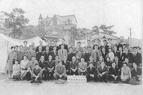 5.20. 学友会主催新入生歓迎会 於商工会議所ホ−ル 東野「自学自習 弘大も明年で25年 百年の四分の一である 伝統をつくりあげたい」 「和装かミニかの討論ゲ−ムに参加」(学部長・佐々木)
