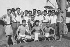 モンテビデオ丸にて(慶應衛生隊・相撲大会にて優勝) 来島伊三郎君と(二龍山にて)
