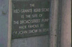 ”THE RED GRANITE KERB STONE IS THE SITE OF THE BROAD STREET PUMP MADE FAMOUS BY DR.JOHN SNOW IN 1854"
