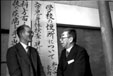 写真2 昭和31年2月23日、弘前市立二中で、学校保健研究発表会と講習会が行われた時、特別講演をされた高橋英次教授と一緒のもので、アッハッハと笑われた時の横顔をスナップしたものだ。当時、脳卒中と高血圧の研究をはじめたばかりのことだったので、写真のそばに”APO”(医師のいうあたり)にご注意と書いてあった。頸の太いのが体型からいって、そうみられたのであろう。