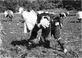 田植えとか除草のような一定の姿勢を1日中保っていることから来る疲労は、いずれは、腰痛とか神経痛の原因になることが考えられています。”そらで”も硬い苗床での苗とりの仕事を、あまり精出してやり続けるためにおこる症状とされています。これはうまく休みを入れてゆくことによって、予防できるものと思われます。