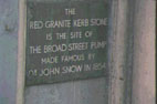 「疫学的」というのは、中国伝来の「易」ではなく、人々の上にという語源をもつエピデミオロジ−で、この考え方はヒポクラテスの時代からありましたが、1854年ロンドンでのJ・スノ−がコレラが水によって起こるのでないかということをコレラ菌が発見される30年も前に明らかにした近代的疫学的研究方法によっていることです。その歴史的な場所がロンドンのピカデリサ−カスのすぐ近くにありますが、その写真です。私のような「疫学者」にとっては極めて大事な場所と考えております。