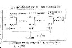 例えば、表はその一例を示すものであるが、ある農村で、15組の中年の夫婦の血圧と尿中食塩排泄量を22日間にわたって調査した成績をまとめたものであるが、夫と妻との間には、尿中食塩排泄量には(+)0.627という、5%の危険率で有意な相関関係が認められるが、夫と妻との間には血圧の相関関係は認められず、全例について血圧と尿中食塩排泄量との間には、有意な相関関係は認められない。これだけの成績で、食塩摂取が血圧水準と関係がないとすることは早計であろう。同じ家に長年すみ、同じ食生活をしている夫と妻の血圧に相関関係が認められないとする他の多くの報告から考えられることは、もし食塩摂取が血圧に関係あるものだとしても、その作用点は、結婚前のかなり若い年齢にあるのではないかとの推測が生まれるのである。ある個人が生まれ育って一生どのような血圧を持ち続けてゆくか、それに食塩がどのように関係してくるのかを明らかにしなければならない。