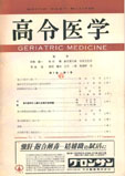 「高令医学(Geriatric Medicine)」が発刊されることになったとき、原島進先生が監修委員の中におられた関係か「脳卒中乃至高血圧症の疫学的研究」(高令医学、1(4), 160-168, 昭32)を書いている。このとき私として初めて「疫学的研究」という表現を使った。脳卒中研究懇話会(代表梅原裕)が発足し、高齢医学(8(2))に第1回の懇話会の特集(その1)と「「脳卒中発作の疫学」(佐々木直亮・山田信男・蓮沼正男)(pp110-115)が掲載された。(その2)は8(4)に文献抄録として「秋田県一農村における死因別にみた生前の血圧」(佐々木直亮・蓮沼正男)(p20)が掲載された。